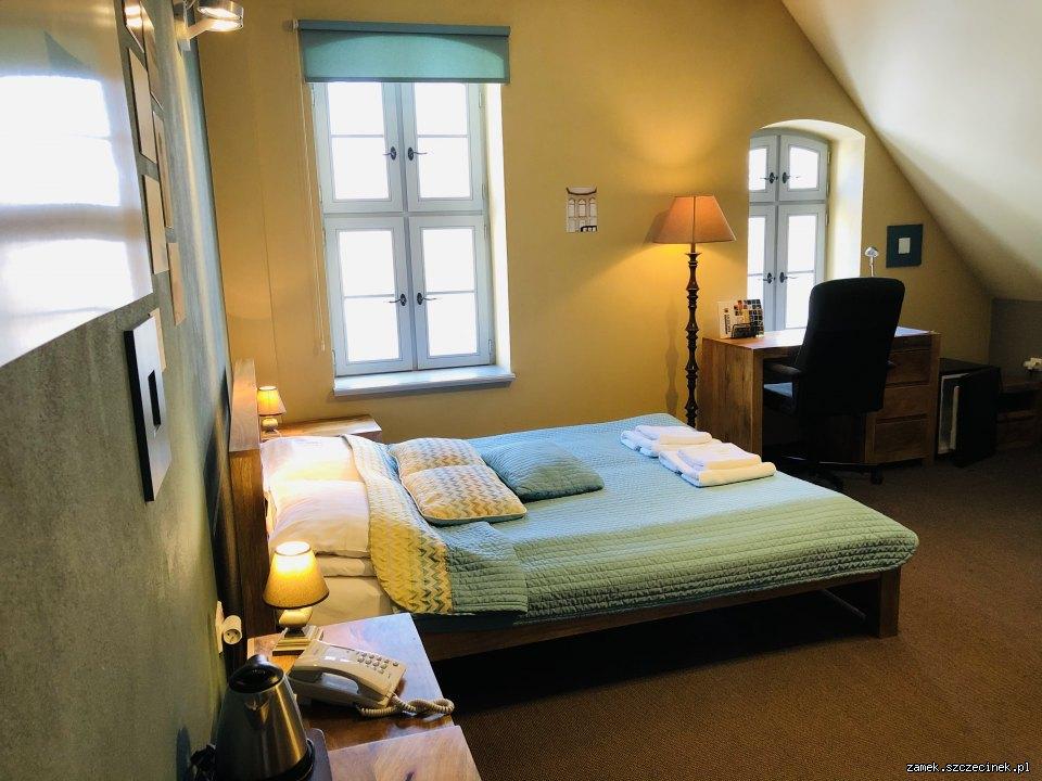 Z okien przestronnej łazienki wyposażonej w wannę rozciąga się piękny widok na jezioro Trzesiecko. Ściany pokoju zdobią fotografie Białej Damy pośród porannych, jeziornych mgieł. Wnętrze pomieszczenia utrzymano w morskiej kolorystyce z gustownie dobranymi dodatkami.